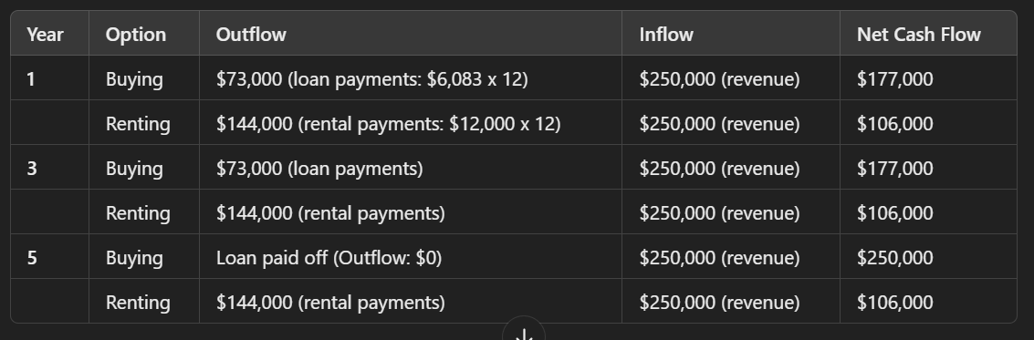 Based on our current situation, the big question for us is, do we go all in, commit to ownership, and bet on a stable pipeline of work? Or do we play it safe, not tie up all our money, and keep renting?