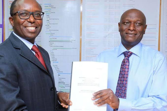 Former energy CS Charles Keter and Tullow’s Martin Mbogo at the 2017 crude oil pipeline signing. (Image Credit: Business Daily)